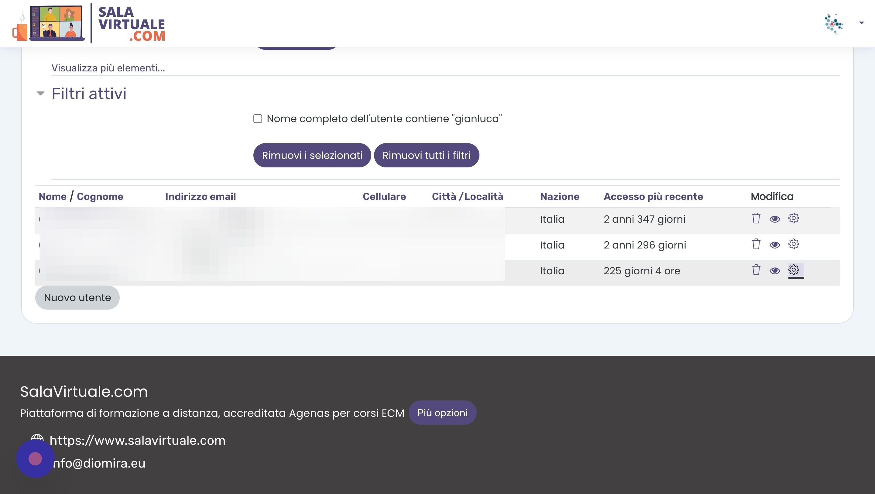 2. Troveremo l'elenco completo di tutti gli utenti iscritti alla piattaforma. Cerchiamo nella barra di ricerca l'utente che vogliamo modificare.