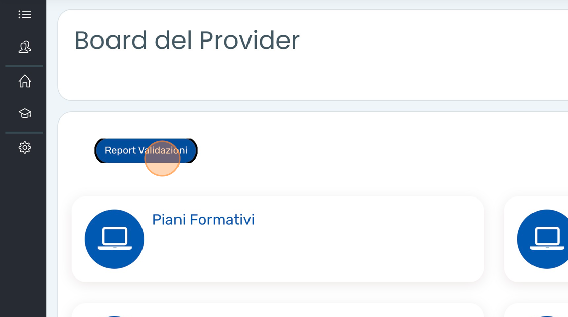 1. Per visualizzare la situazione delle validazioni dei Piani Formativi e dei Progetti Extra Piano Formativo da parte dei membri del proprio Board, cliccare su "Report Validazioni"