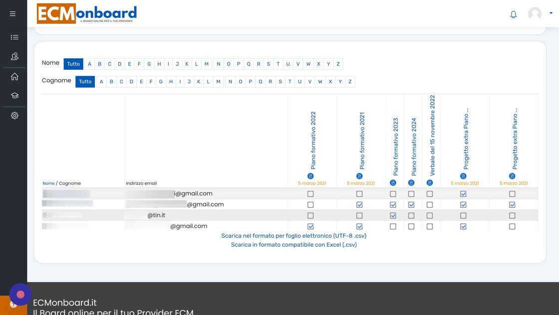 3. Cliccando le voci sottostanti è possibile scaricare in formato Excel il Report delle validazioni